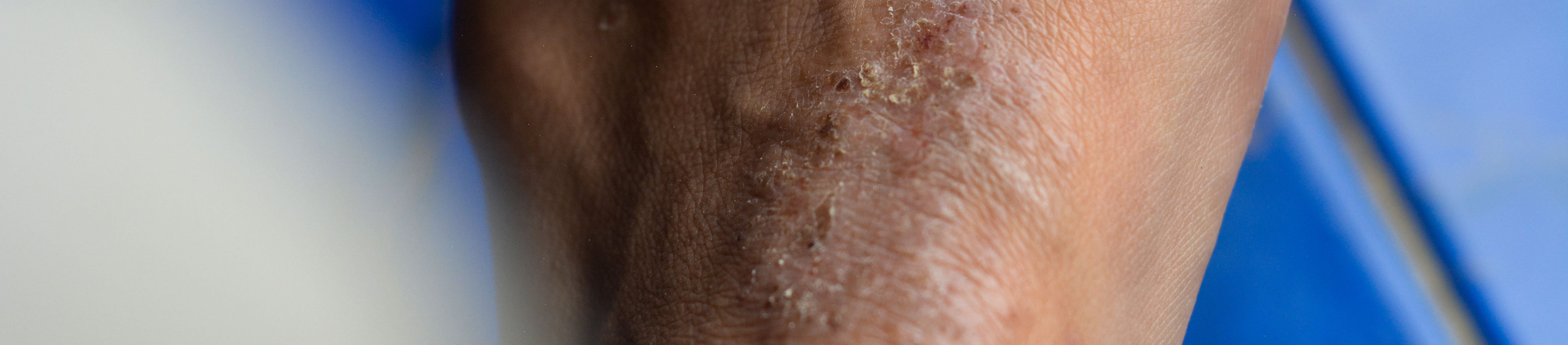 - Schilferende, droge huid op voetzolen of rond de enkels.