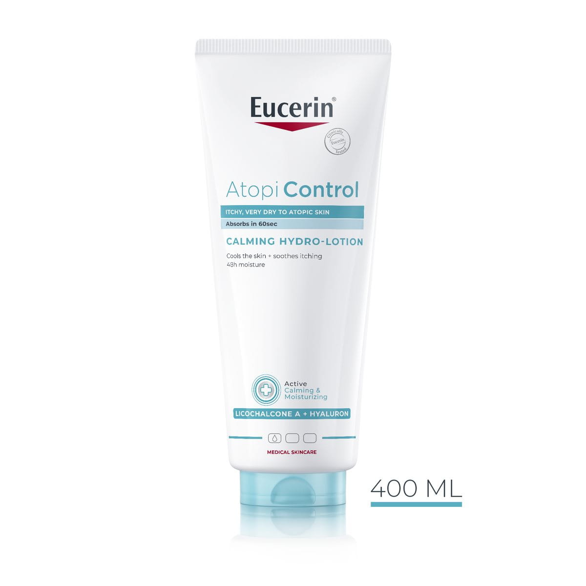 Eucerin AtopiControl Hydro Gel-Crème is een dagelijkse basisverzorging voor het lichaam die speciaal is ontwikkeld om de huid met jeukerig en irritatiegevoel te verzachten en intensief te hydrateren. De combinatie van Licochalcone A, Hyaluronzuur en Ceramiden biedt onmiddellijke verzachting, vermindert een jeukerig gevoel van de huid met neiging tot eczeem, en laat de huid langdurig aangenaam aanvoelen. Bij regelmatig gebruik verbetert de huidtoestand aanzienlijk, en voelt de huid zachter en gladder aan.