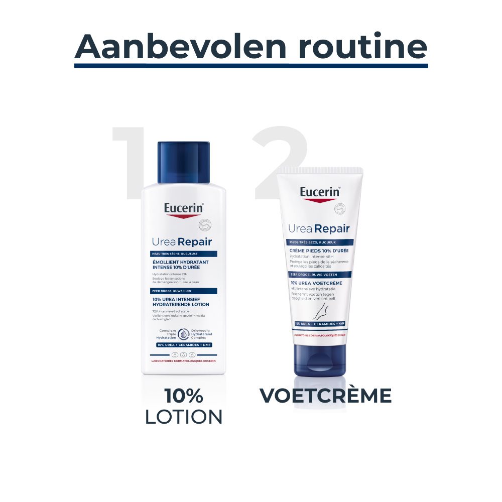 Eucerin’s UreaRepair PLUS Lotion 10% bevat een hoge concentratie ureum en andere NMFs (om water in de huid vast te houden) en ceramide (om de barrière van de huid te herstellen en vochtverlies te voorkomen). De formule biedt onmiddellijke verlichting en stelt de symptomen van een extreem droge huid (zoals jeuk en schilfers) uit tot wel 48 uur lang.