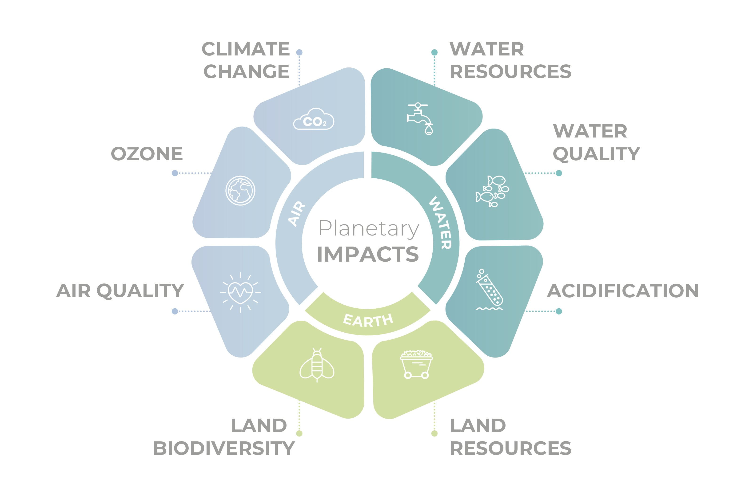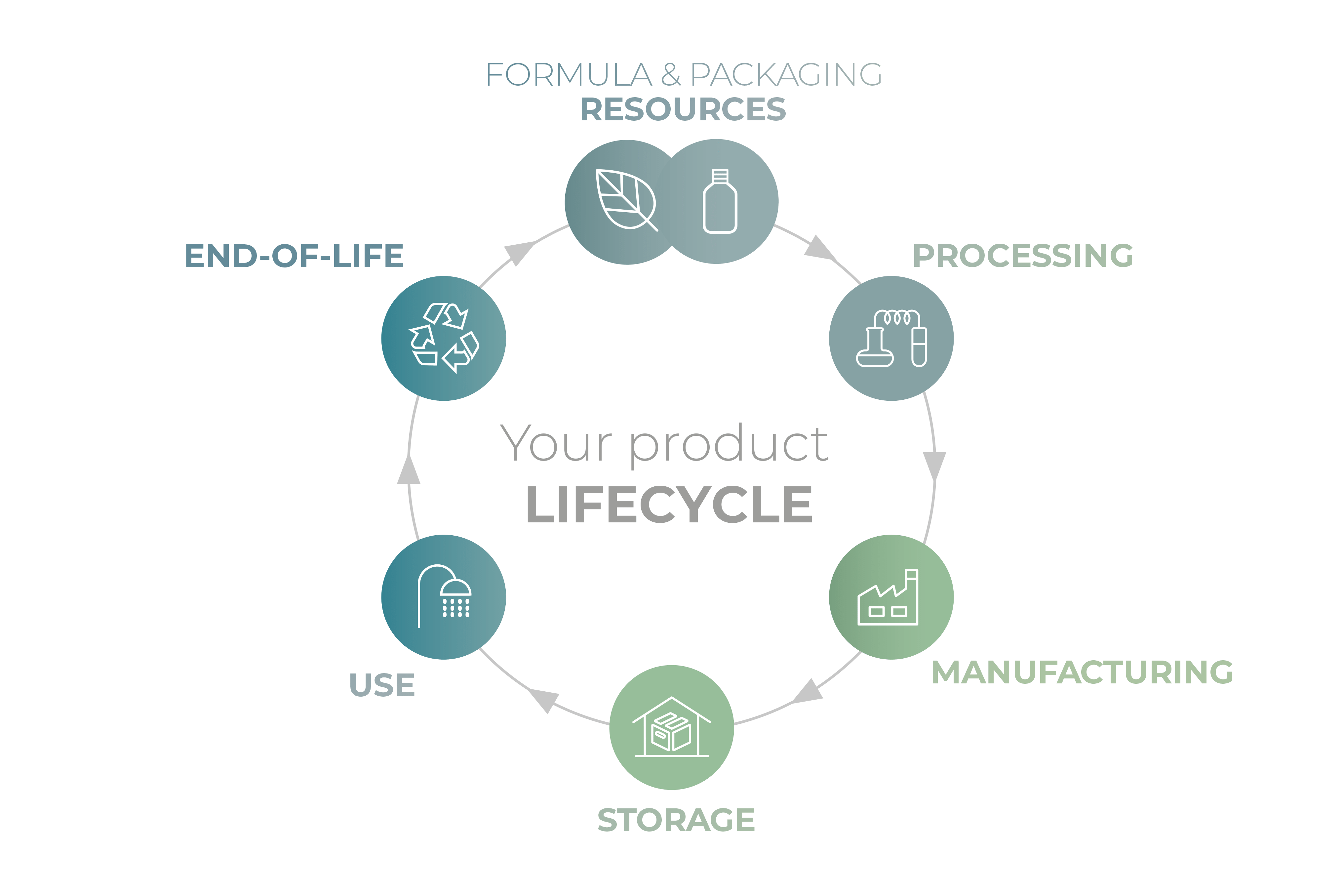 Om de EcoBeautyScore te berekenen, wordt de hele levenscyclus van een product beoordeeld, waarbij rekening wordt gehouden met verschillende types milieu-impact om de eindscore te kunnen bepalen.
